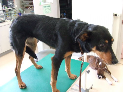 最近は、雪が融けて足場が悪いためディスクや雪玉遊びもしていないし、足を怪我する心当たりもなかったので、急所会社を休んでT獣医師の病院へ行きました。