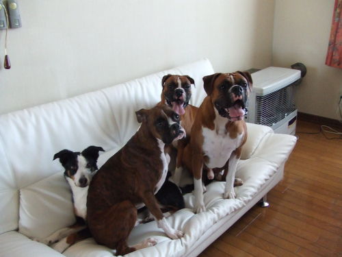 ロムさんはT獣医師宅のボクサーズとバタバタ遊んでいました。