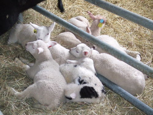 黒い仔羊達のお父さんはジョグ・・・じゃなかった、脱柵ジェイコブくんでしたが、白い仔羊達のお父さんはテクセルのカバ男くん。
