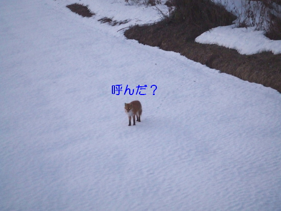 何故このキツネがこんなに人馴れしてしまったかは解りませんが、せっかくわたくしの車に轢かれずに命拾いしたのですからこれからも長生きしてほしい!と思い可哀想でしたが、「わー!」と声を出して追い払いました。なのにキツネは一定の距離を保つものの向こうへいこうとしません。