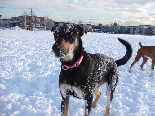 今日は今年一番の冷え込みということでしたが、札幌はー10℃くらいと暖かかったので(我が地域は-21℃・・・)ワンコ達も楽しそうに走っていました~。