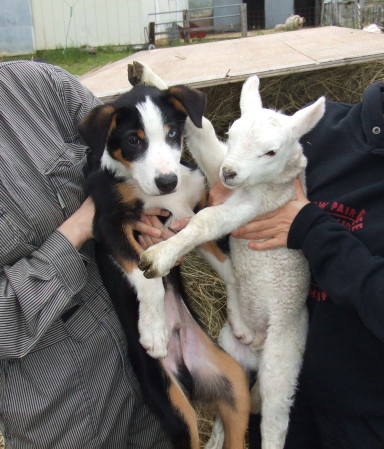 仔犬ちゃん生後3ヶ月にして、初めて羊さんとご対面。
