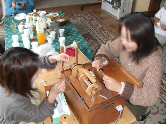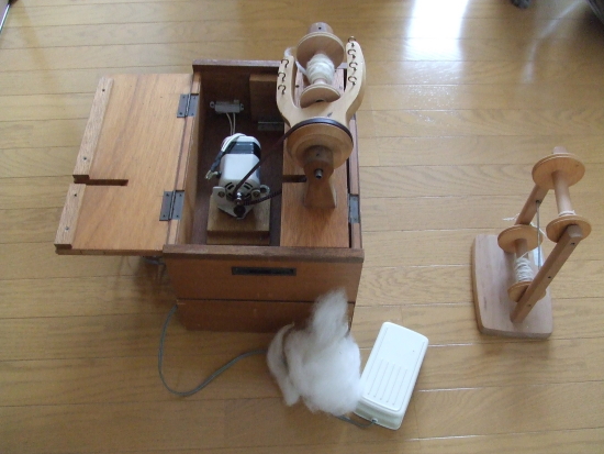 紡ぎは数回やって、あまりの自分のセンスの無さに絶望し(爆)やろうとも思わなかったのですが、親びんの「電動紡ぎ機あるよ」のお言葉にわたくしの興味が・・・