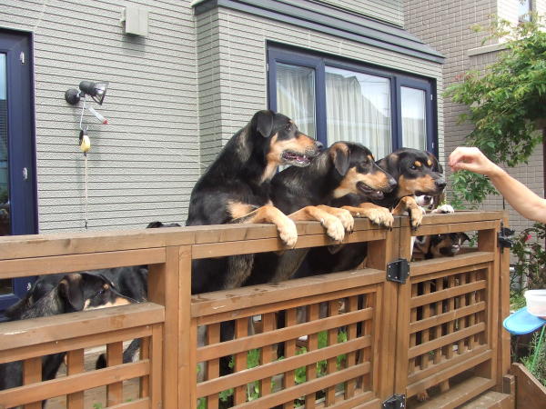 親びんのワンコ達は声&口笛で動きます。