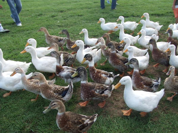 パピーにひつじ追いを教える時、まずアヒルを追わせて自信を付けさせます。