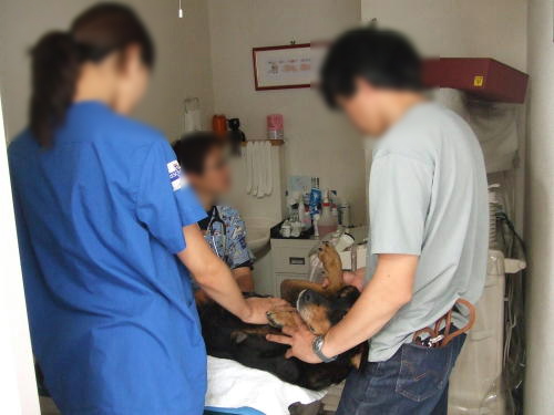 ワーキングドッグ達を引き連れてT獣医師の病院へ行きました。