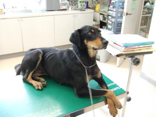T獣医師のヤクザなオーラに、間違えた、首からの採血にビビるジョグ。