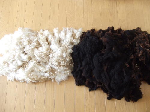 わたくしのお部屋(ひつじ部屋と呼ばれています)を開けると、まだ洗っていない羊毛ちゃんたちのかほりが・・・