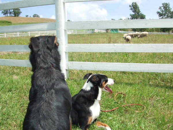 お犬さまたちはというと、メイさん&デンボくんは「暑いからひつじ追いはパスッ!」という感じでしたがロムさんだけはひつじさんを前に、