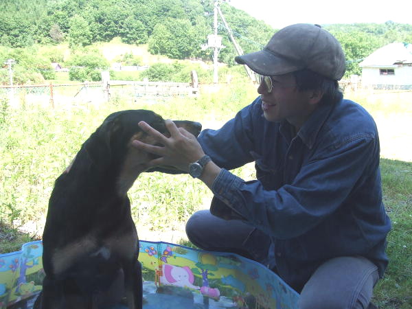 お犬さまたちはというと、メイさん&デンボくんは「暑いからひつじ追いはパスッ!」という感じでしたがロムさんだけはひつじさんを前に、食いたい!追いたい気マンマンで、わたくしに「コマンド(命令)プリィ~ズ♪」光線をビシビシ出していましたが「人んちですから・・・--)」と制されて面白くない様子でした。