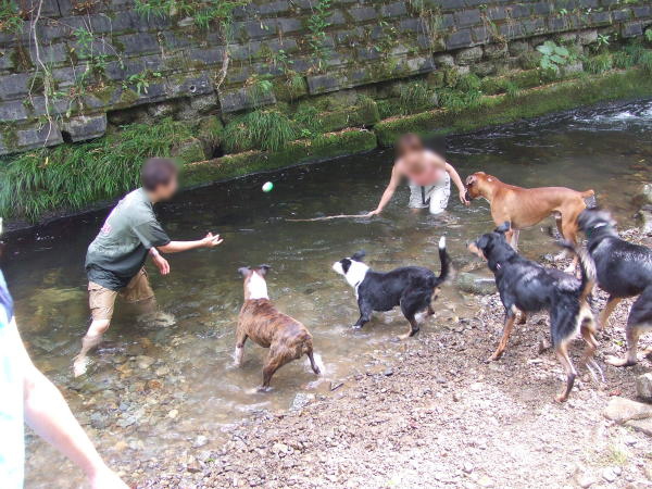 何と!デンボくんが水嫌いを克服しました!他のワンコ達が木の枝や