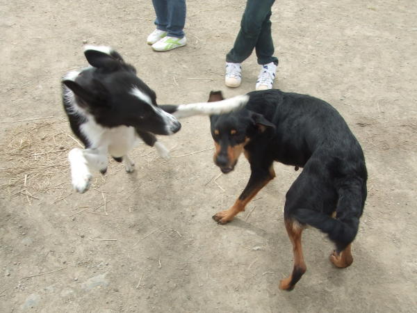 他のワンコ達が「ガゥガゥ」やっている中、一匹親びんに求愛中のファイ♪