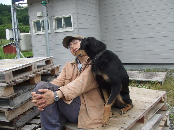 そんな、風が強くて気温も低い牧場に、銀河庭園でひつじ担当をしているKさんと、メイさんの父犬「ジム」と兄弟犬「フレッド」などワンコ担当をしているNさんが遊びに来てくれました(^^)