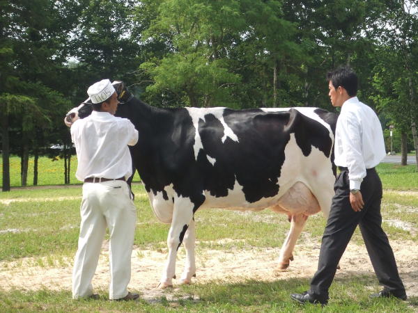 審査は「健康で骨格のしっかりした体型と付着・形状の良い乳房、丈夫な肢締等を競う」そうで、出展者も審査員も真剣そのもの!