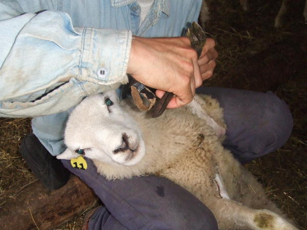わたくしもびっこをひいているひつじさんを探しましたが、見当たらず「親びん、びっこをひいているひつじさんはおりませんっ!」と報告するも「ウソつけ・・・」とひょいひょいとひつじさんを捕まえ、蹄を切って抗生物質をつけてあげます。