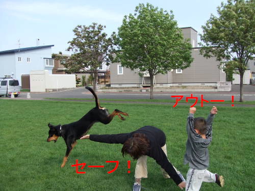 チェビー、スゴイ!でも、チェビママと団子次男の動きが野球の審判みたいに見えるのはわたくしだけ?(笑)
