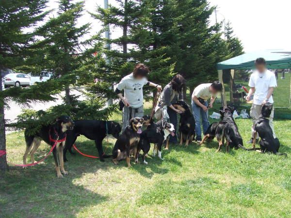 集まった応援団は、のりノリっ子家のグレン、カルピー家のカルフ&ピーニャ、Kiwi Kennel出身のウパ、メイさんの同胎犬のハンタ、そして我が家のお犬様たち(*^m^*)
