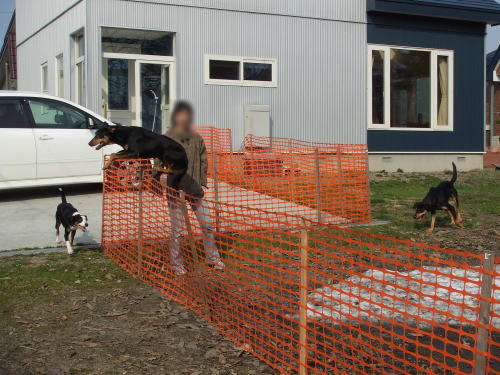 一応のしつけ入っている我が家のお犬さまは敷地の外に出ることもありませんし、1m20cmの工事用オレンジネットなど軽~く飛び越してしまうので実際的にはあまり意味はないのですが、ご近所さん的には安心らしいです(笑)