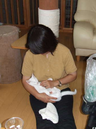 抱っこが嫌いな我家のシロさんが、あいちゃんのママに抱かれて寝てます!
