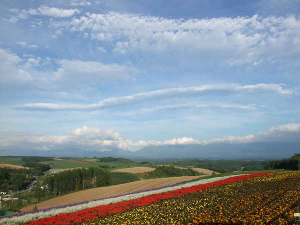 十勝岳・美瑛岳・富良野岳をバックに、美しい花達が並んでとってもキレイ!!!