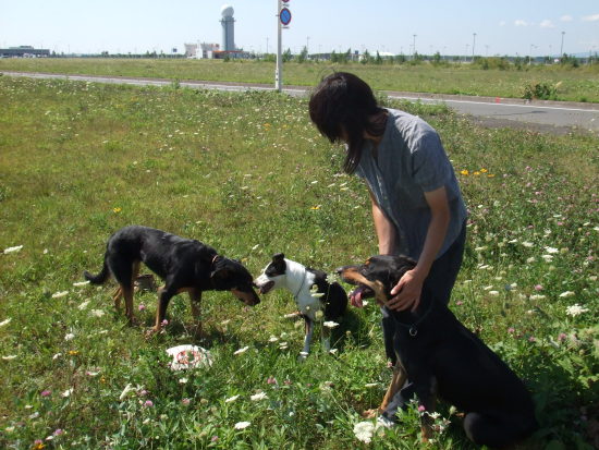 千歳空港貨物ターミナルでの用事を済ませたあとは、敷地内の緑地帯でお犬さま達と遊びました