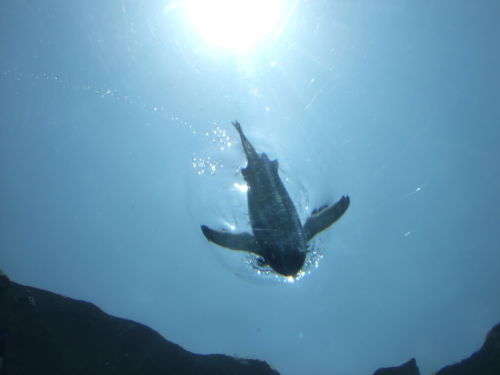 <ペンギン館>では水中トンネルからペンギンの泳ぎが見れます♪
