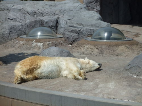 出来ますが、この日は暑過ぎてホッキョクグマさんまったく動かず・・(笑)