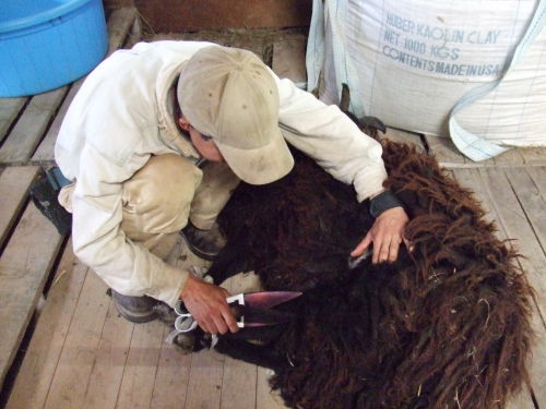 親びんが少し見本を見せてくれました。「刃をひつじの体に沿わせるように・・・」