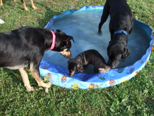 T獣医師宅のロン&ベックン家のラック&ウパもプールに入りました。