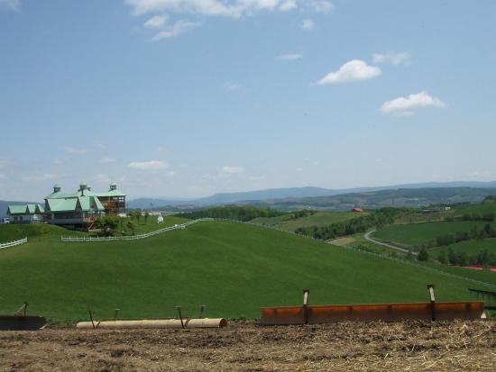 羊舎から見た士別。北海道らしいですね(^^)